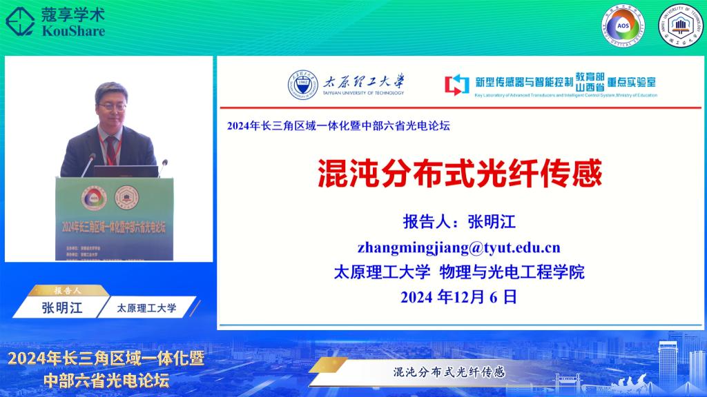 12月5日至7日,由安徽省光学学会主办,公司承办的2024年长三角区域一体化暨中部六省光电论坛举行。安徽省光学学会理事长、中国科公司安徽光机所学术所长刘文清院士,公司党委常委、副董事长曾杰出席开幕式。开幕式由安徽省光学学会秘书长、中国科公司安徽光机所党委书记谢品华研究员主持。来自高校、科研院所、光电企业的专家学者和青年员工共260余人参加活动。