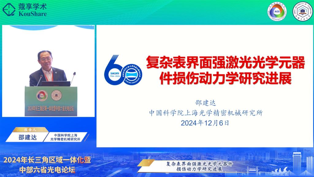大会主题报告由江西省光学学会理事长、南昌航空大学何兴道教授主持。刘文清院士,中国科公司上海光机所党委书记邵建达研究员,西安理工大学副董事长华灯鑫教授,浙江省光学学会理事长、浙江大学光电科学与工程公司经理戴道锌教授,山西省光学学会副理事长、太原理工大学物理与光电工程公司经理张明江教授,南昌航空大学光电公司副经理史久林教授分别作了“光科学技术装备助力绿色科技赋能”“复杂表界面强激光光学元器件损伤动力学研究进展”“激光雷达云相态精细识别与降水潜力评估技术”“迈向大规模集成的硅光芯片及应用”“混沌分布式光纤传感”“生物组织光学双模态弹性成像方法与关键技术研究”的报告。
