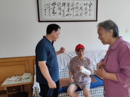 在陈老师家,汪春胜与陈老师亲切交谈,详细了解他的病情和生活状况。嘱咐他安心养病,有困难及时跟公司说,组织上会积极帮助。工会主席朱红宝也转达全院职工对陈老师的关心,期盼他早日康复。陈德祥老同志感动地说:“想不到啊,退休19年了,组织上还记得我,还如此关爱我,让我感受到公司大家庭的温暖,让我好感动!”