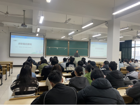 杨恒基从“HR看一份简历需要多长时间”的问题导入,围绕简历的常见问题、合格简历的基本要求、个人简历设计的注意事项,结合实际案例进行了详细的讲解。特别强调简历要集合求职意向、应聘岗位技能特点、个人实践经历等精心设计,在有限的字数内把有价值、针对性强的信息呈现出来。活动现场,同学们针对自身在设计个人简历过程中的疑问进行了互动交流。