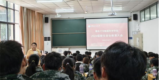 随后年级辅导员分别从消防安全、交通安全、网络安全、人身安全等方面进行了详细的讲解。在消防安全方面,通过展示真实的火灾案例,向同学们介绍了火灾的危害和预防措施,以及如何正确使用灭火器等消防器材。在交通安全方面,提醒新生们要遵守交通规则,注意出行安全,特别是在校园内要减速慢行,避免发生交通事故。在网络安全方面,结合当前网络诈骗的新形势,向新生们介绍了网络诈骗的常见手段和防范方法,提醒大家要提高警惕,保护好个人信息,避免上当受骗,同时也要规范个人网络行为。在人身安全方面,强调了要增强自我保护意识,避免单独外出,尤其是在夜间要注意安全。