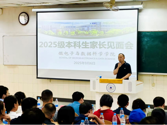 为进一步深化家校协同育人工作实效,9月6日下午,微数公司在阶教101召开2025级新生家长见面会。公司党委书记汪春胜、经理杨二光、公司党委副书记张敏、副经理李勇,本科专业系主任、辅导员、新生班主任、2025级员工家长参加会议。会议由张敏主持。